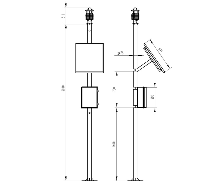 5、兩米碳鋼支架,頂部無(wú)需法蘭盤可直接套接傳感器